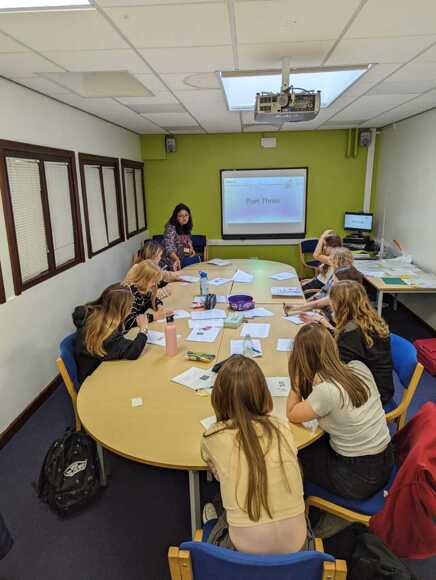 We were thrilled on Wednesday to welcome Saadia from the Children’s Literacy Charity to the Library for a day of training in the Reader Leaders programme for 9 of our sixth form volunteers.